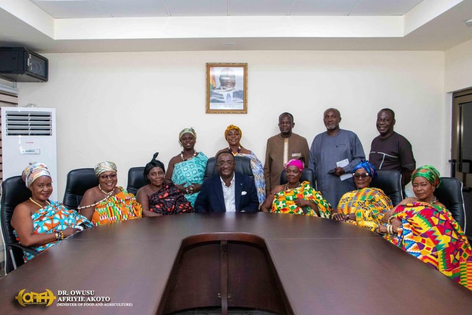The executives of the Queen Mothers Association paid a courtesy call on Dr. Owusu Afriyie Akoto, Minister for Food and Agriculture at The Ministry Of Food And Agriculture, Ghana to discuss ways in which the Ministry can assist to improve Agriculture in their various communities.