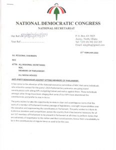 “It has come to the attention of the National executive committee of NDC that some individuals who intend to contest for the party’s 2024 Parliamentary primaries are going round constituencies with sitting MPs instigating hatred and malice against them. These individuals, amongst other things, have been alleging that some of our MPs have abandoned the constituencies and prefer to stay in Accra… The party wishes to inform its numerous members and sympathizers across the country that it has become necessary for all our 137 members of Parliament to be present in Parliament at all times to perform duties that are extremely of importance to the nation and their constituencies, hence their unavailability to be in the constituencies at regular times as used to be the case,” the statement indicated.