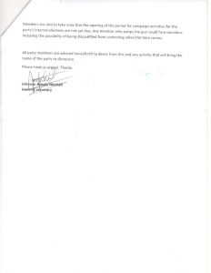 He further urged all members of the party to desist from any activity that will bring the name of the party into disrepute.