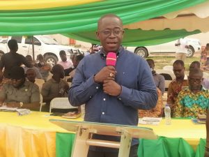 Hon. Adu Poku Christian,DCE for the area appealed to the people of KWABRE South to always cooperate with revenue collectors of the assembly by paying their dues for the development of the area.He said,it is only through revenue mobilization that the assembly will get money to develop Afigya KWABRE South.He however donated school bags to every single pupil who was present at the event.