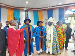 Aside from the honorary doctorate degrees of divinity bestowed on Kunsuhene Nana Agyemang Duah I and Oheneyere Mercy Asiedu, the durbar was organized to raise funds in aid of the I.C.T Centre construction in the community.