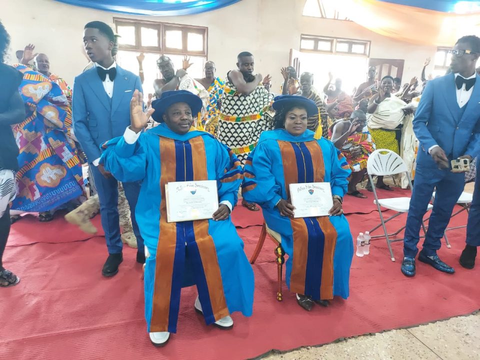 Aside from the honorary doctorate degrees of divinity bestowed on Kunsuhene Nana Agyemang Duah I and Oheneyere Mercy Asiedu, the durbar was organized to raise funds in aid of the I.C.T Centre construction in the community.