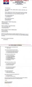 Contained in a statement signed by its General Secretary, Justin Kodua Frimpong, it lists 29 names for the various executive positions of the party.