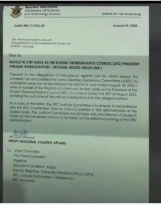 KNUST SRC President ordered to step aside over allegations of misconduct