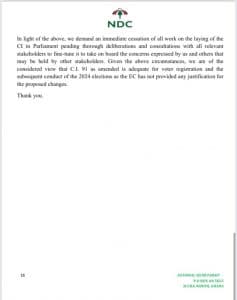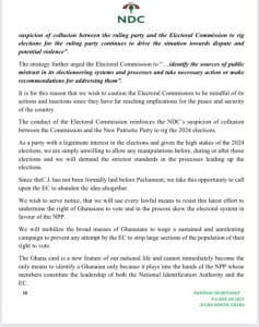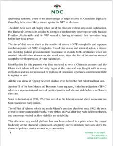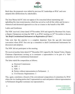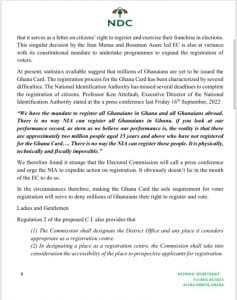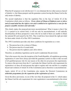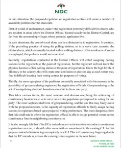 The NDC also noted with concern that the ‘No Guarantor’ system the EC intends to adopt is a recipe for manipulation, gerrymandering that can be engineered by ‘paid’ agents or EC officials at their offices because political party representatives who may hitherto challenge or flag persons would have been eliminated.