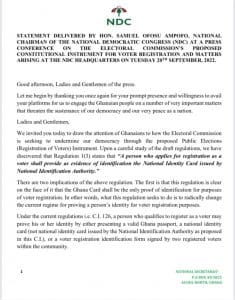 National Chairman of the party, Samuel Ofosu Ampofo who addressed the media explained that the CI if passed would make easy accessibility for prospective applicants in hard-to-reach areas extremely difficult compared to the past where proximity to Polling Stations was key.