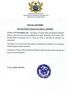 It said it was not aware of any threat targeted at Ghanaians in Nigeria.