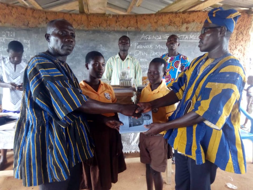Mr. Adams Kojo Tandoh received the items on behalf of the District Education Director and appreciated the effort of the school headmaster promising that the teachers and the students will make proper use of the items.