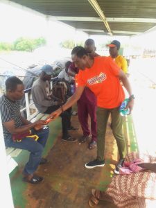 The Oti Regional office of GTA has celebrated this year’s national chocolate day with the travelling populace at Dambai. The Oti Regional Director, Mr Isaac Asiam lead a team of officers to distribute chocolates to passengers on board the ferry MV Nana Besemuna.