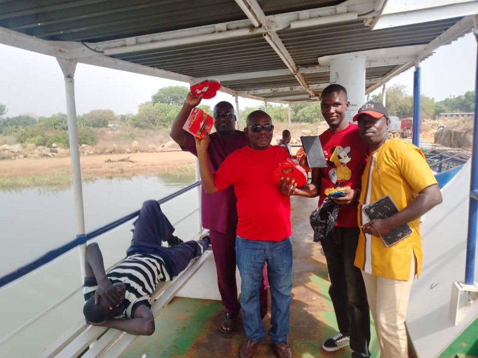 The Oti Regional office of GTA has celebrated this year’s national chocolate day with the travelling populace at Dambai. The Oti Regional Director, Mr Isaac Asiam lead a team of officers to distribute chocolates to passengers on board the ferry MV Nana Besemuna.