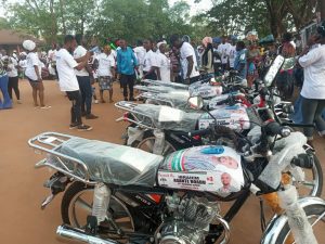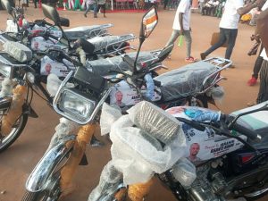 Mr. Ibrahim Asante Boadu the Parliamentary Candidate Hopeful for the NDC in the Bosomtwe Constituency has donated 5 brand new motor bikes to his party.