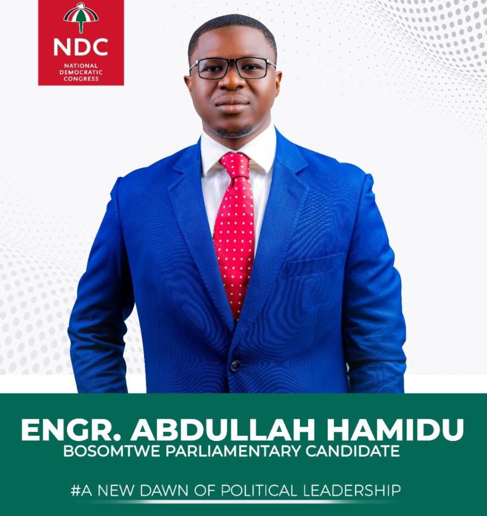 Comrades, ladies and gentlemen, I once again express my profound gratitude to you for your overwhelming endorsement at the polls. I, Engr. Abdullah Hamidu, having been duly elected as your Parliamentary Candidate ahead of election 2024 promises to serve you selflessly. As your servant-leader, I remain indebted to you and pray above all things that our collective will to revive the NDC in the Constituency and to win the Bosomtwe seat comes to pass. Remember, this is a new dawn of political servant-leadership. I thank you all and may Allah come to our aid in our service.