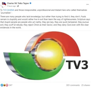 Reacting to the report by TV3, Teiko Tagoe who has been tagged as a ‘social media land guard’ attacked the media house for reporting what they gathered from Cecilia Dapaah’s home.