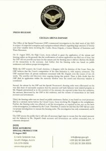 “The freezing order was not based on public sentiments. Rather, it was based on court processes filed in a criminal matter before the Circuit Court, Accra involving Ms. Dapaah as the complainant. Further, the freezing order was effected to aid the investigation, as required by law, not on the basis of the investigation, as indicated by the Court. Therefore, it cannot be said that the OSP did not carry out proper investigations to warrant the freezing order. The investigation has only commenced, and it is ongoing.”