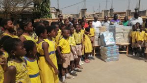 On behalf of member of Parliament, the constituency executives lead by the first vice chairman Mr Ernest Kwaku Agyei donate the items to the schools.