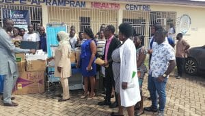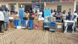 The items, worth GH₵200,000, included Microscope, Autoclave, oxygen flow meter, Centrifugu181, Bedside screen, Suturing set, Pulse Oximeter, Laboratory Oven, Medication trolley, Bedside locker, Water bath, Laptop lemovo 13, Oxygen cylinder, Dressing, Episiotomy, Episiotomy light, washing machine.