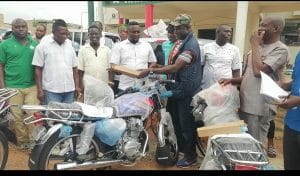 Unsuccessful NDC Parliamentary Aspirant for Effiduase Asokore , Christopher Osei Sarfo , provided all the 10 motorbikes to the Ashanti Regional Organization Department for swift distribution.