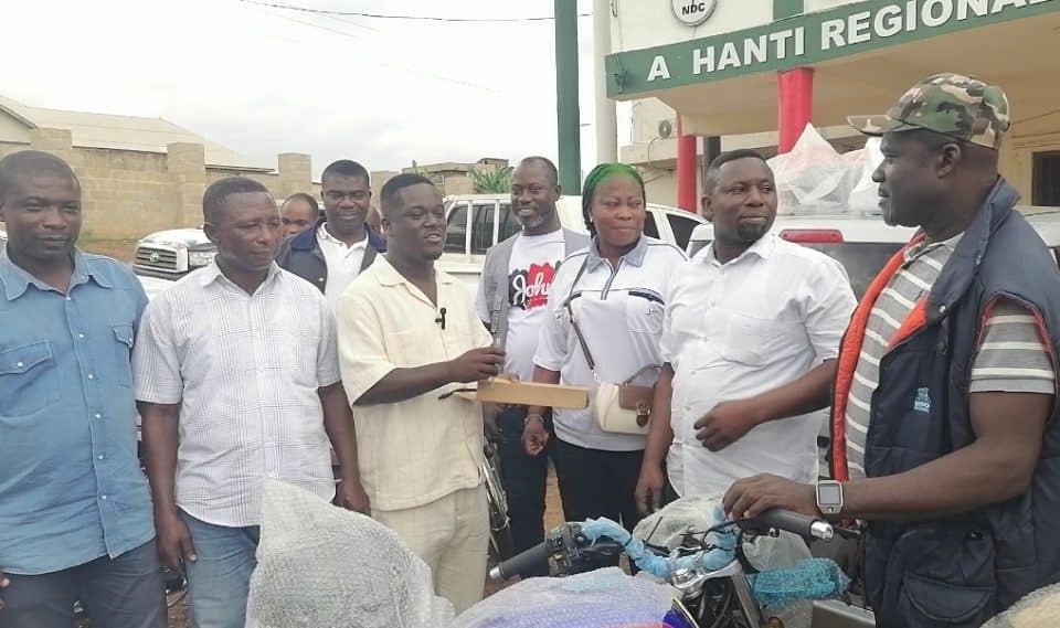 Unsuccessful NDC Parliamentary Aspirant for Effiduase Asokore , Christopher Osei Sarfo , provided all the 10 motorbikes to the Ashanti Regional Organization Department for swift distribution.