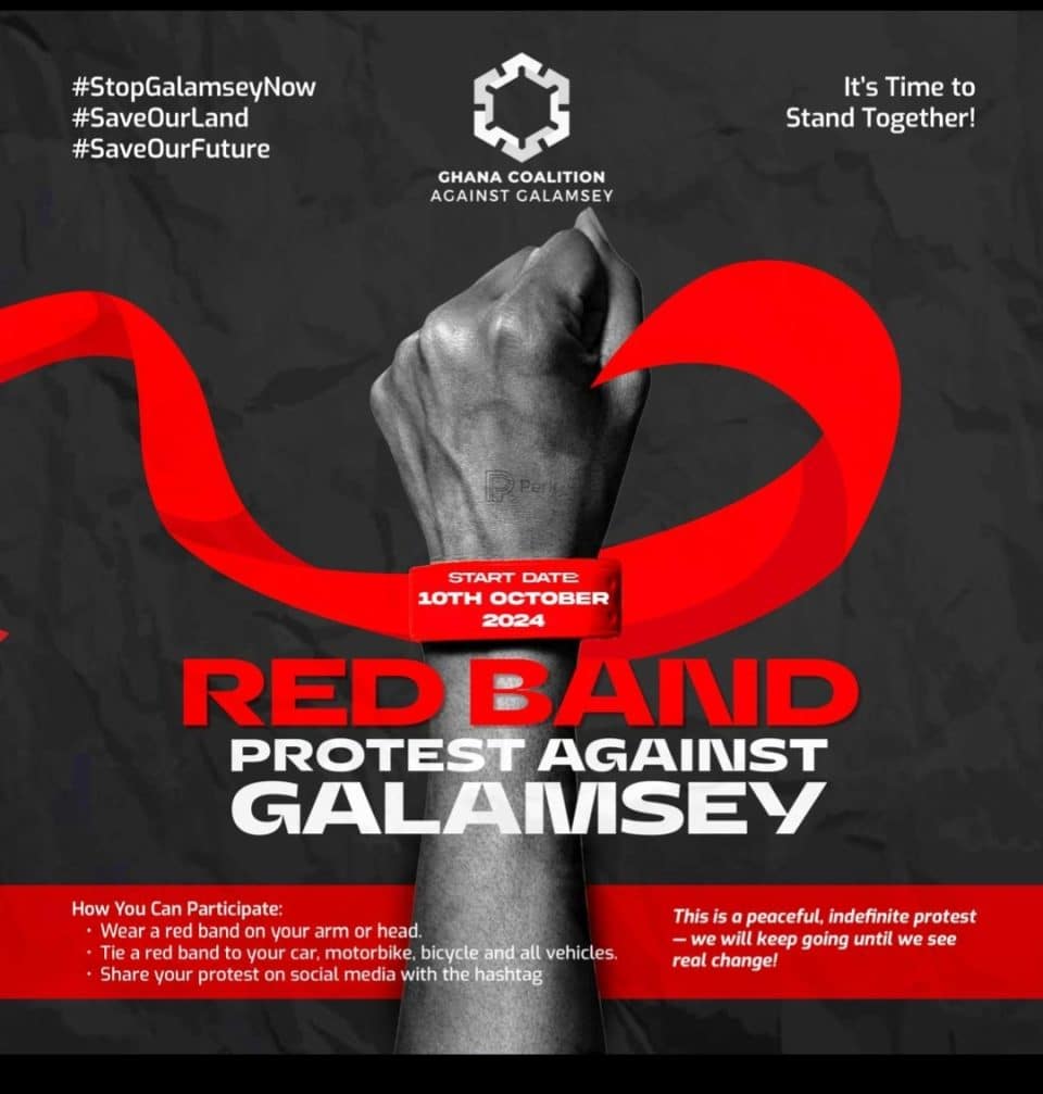 The United Press for Development Network (UPDN) wishes to inform and encourage all its esteemed members, media practitioners, and partners to fully participate in the upcoming *”Red Band Protest Against Galamsey”* organized by the Ghana Coalition Against Galamsey. The protest is scheduled to begin tomorrow, *Thursday, 10th October 2024.*