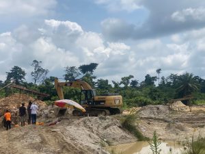 Upon spotting the task force, the illegal miners fled the scene, with some crossing the river to evade arrest. The Task Force, however, confiscated five (5) excavators, which were handed over to the Assin North District Assembly, and immobilized three (3) excavators entrenched at the site. Makeshift structures were demolished, and equipment—including generators, pumping machines, and changfans—was destroyed. An ID card belonging to one Mr. Cobinah Timothy was recovered, potentially aiding further investigations.
