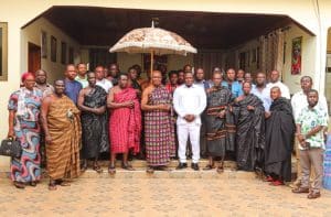 The visit, which took place at the Hiahene’s palace in Kumasi, provided an opportunity for the DCE to formally introduce himself, share the government’s development agenda for the district, his vision and also seek the wisdom and support of Oheneba Hiahene in the implementation of projects and policies in the district.