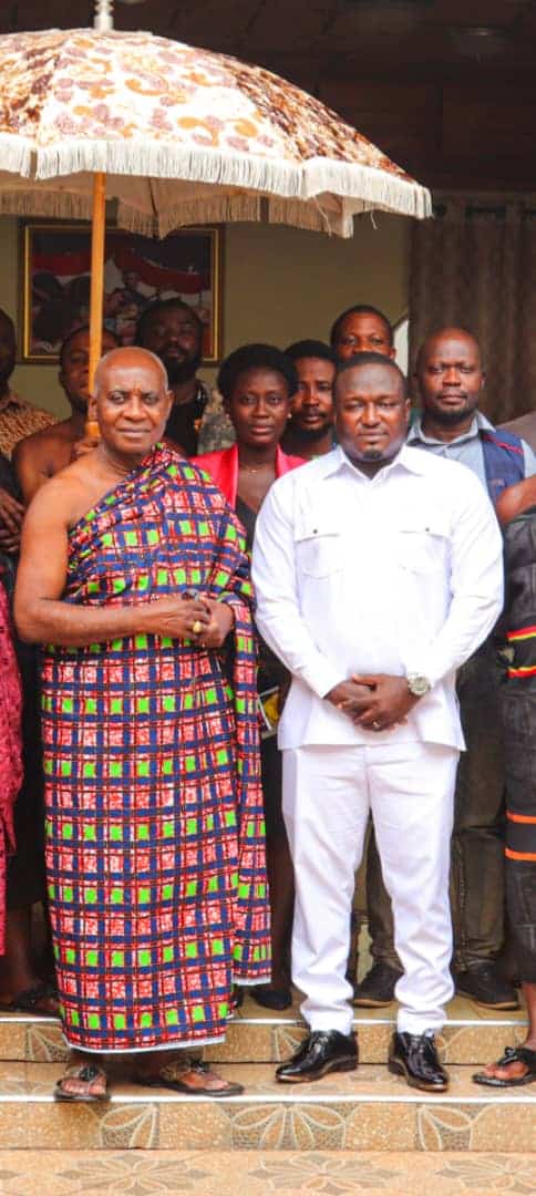 The District Chief Executive (DCE) for Ahafo Ano South West, Hon. Abubakar Sedik has paid a courtesy call on Otumfuo Hiahene, Nana Prof. Oheneba Boachie-Adjei Woahene II, as part of efforts to strengthen collaboration between the District Assembly and traditional authorities for the development of the area.