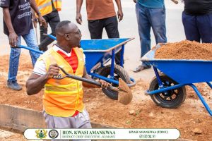 Hon. Amankwa’s message was reinforced by the District Coordinating Director, Mr. Emmanuel Appia-Kubi, who participated in the clean-up exercise at Kumawu Oyoko. Mr. Appia-Kubi advised the community on the importance of healthy living and urged the youth not to litter in public places.