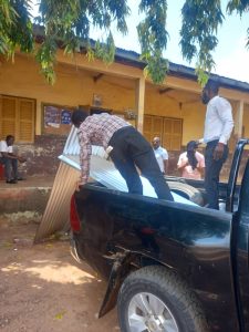 The Metro Director of KMA led a team from NADMO’s Ashanti Region and Subin Sub-Metro secretariat to donate roofing sheets to the school.