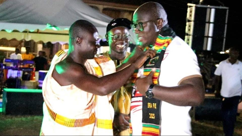 Kumawu Bodomasehene Nana Baffour Atta Dweneboah urged Hon. Ernest Yaw Anim and Hon. Kwasi Amankwa to work together to accelerate development in Bodomase, particularly in areas such as roads, schools, and other essential infrastructure.