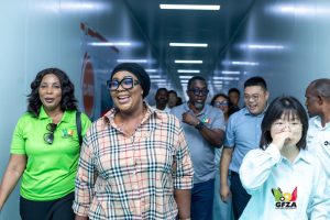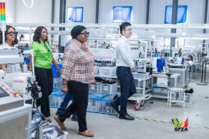 The Ghana Free Zones Authority (GFZA) CEO, Dr. Mary Awusi, visited three companies at Bright Industrial Park in Afienya, inspecting operations and discussing challenges.